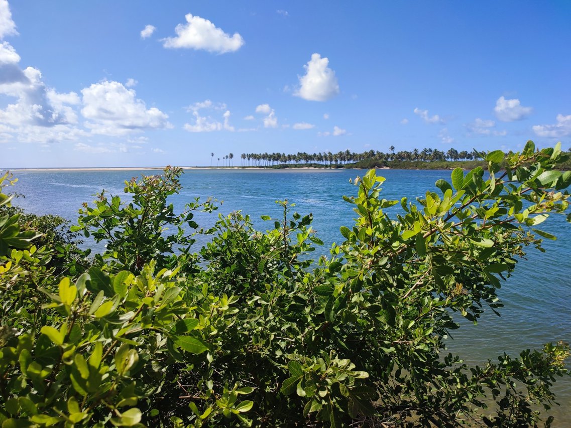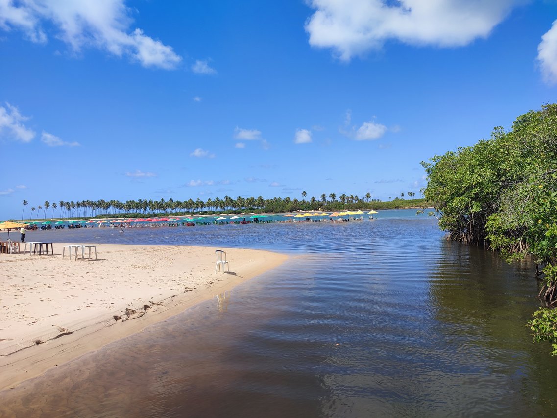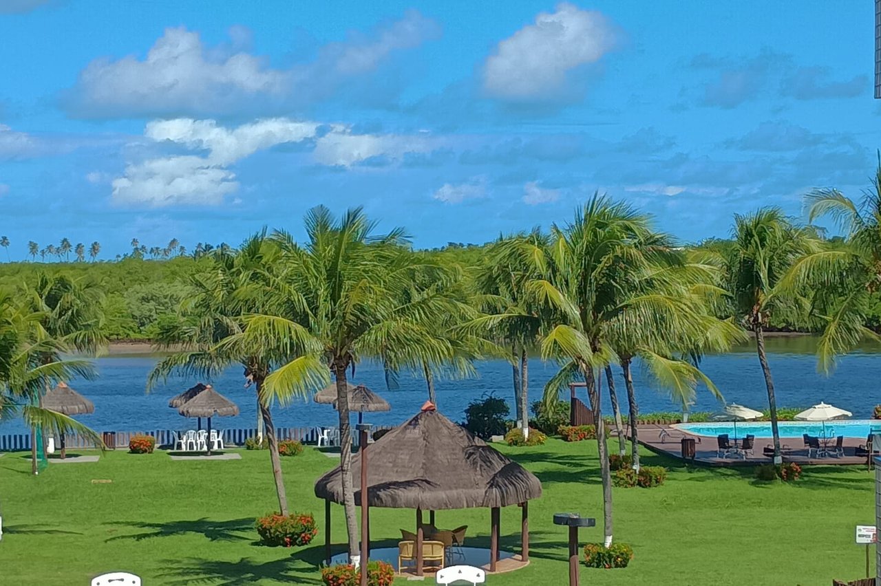 condomínio de frente para o rio Jacuípe, encontro do rio com o mar.